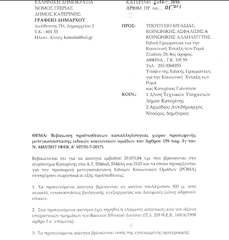 Επανέρχεται -με νέα ανακοίνωση- ο Δήμος Κατερίνης στο θέμα του καταυλισμού τον Ρομά -και μετά την πρόσφατη απάντηση που έδωσαν οι Πολίτες σε Δράση- ζητώντας από τον πρώην δήμαρχο, να εξηγήσει, γιατί επιλέχθηκε «εν γνώσει σας» ακατάλληλος χώρος, για τη προσωρινή μετεγκατάσταση των Ρομά.