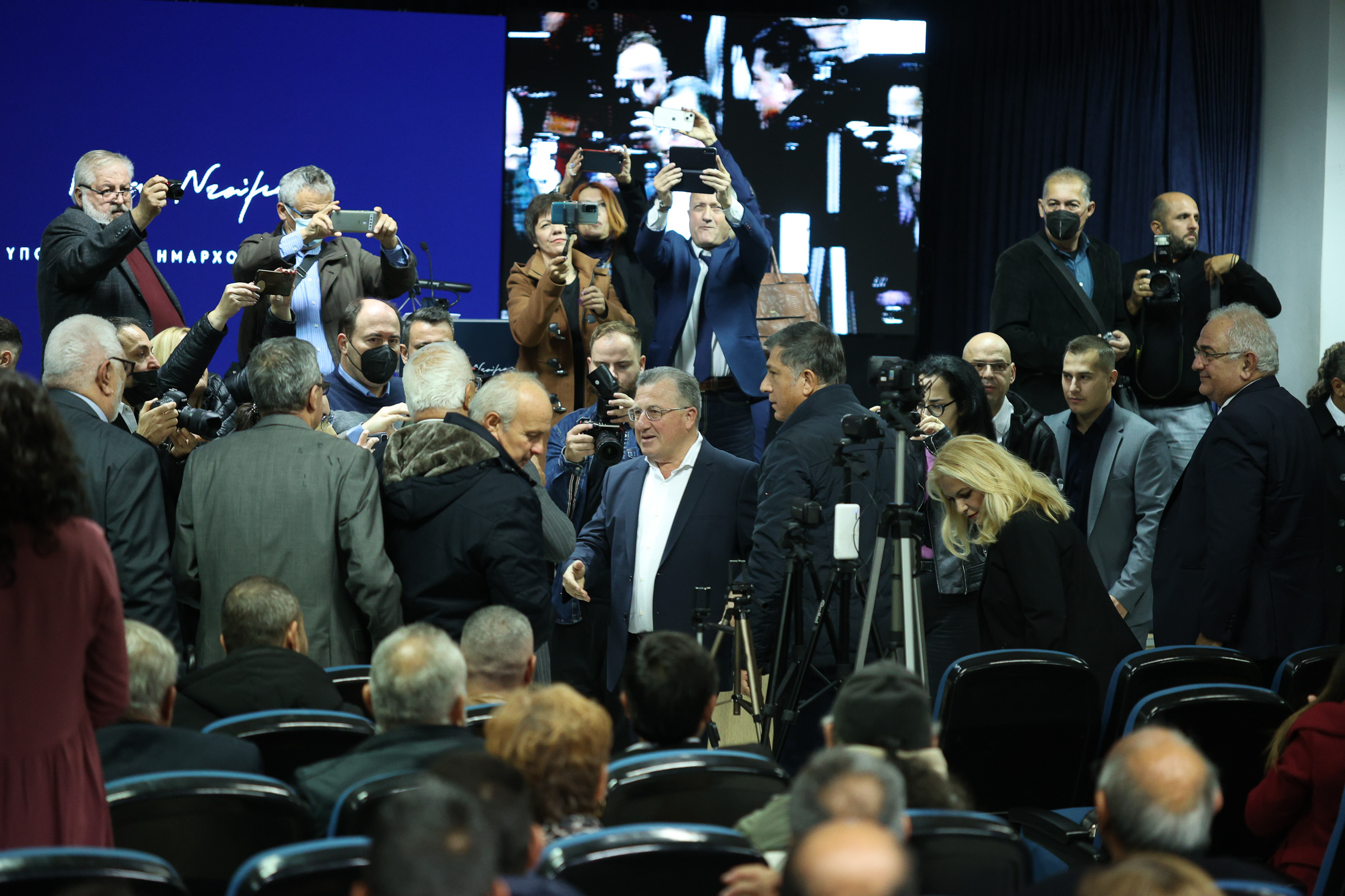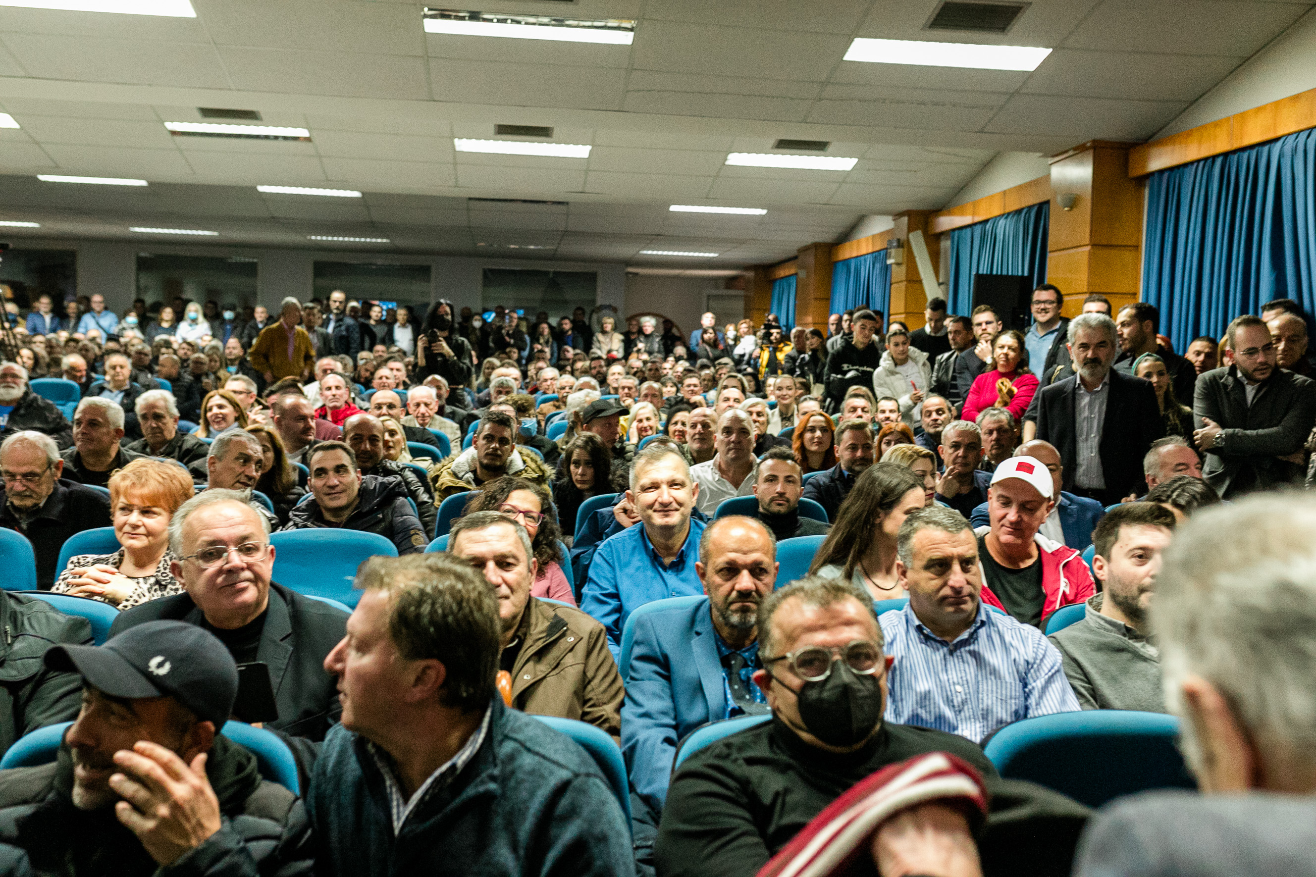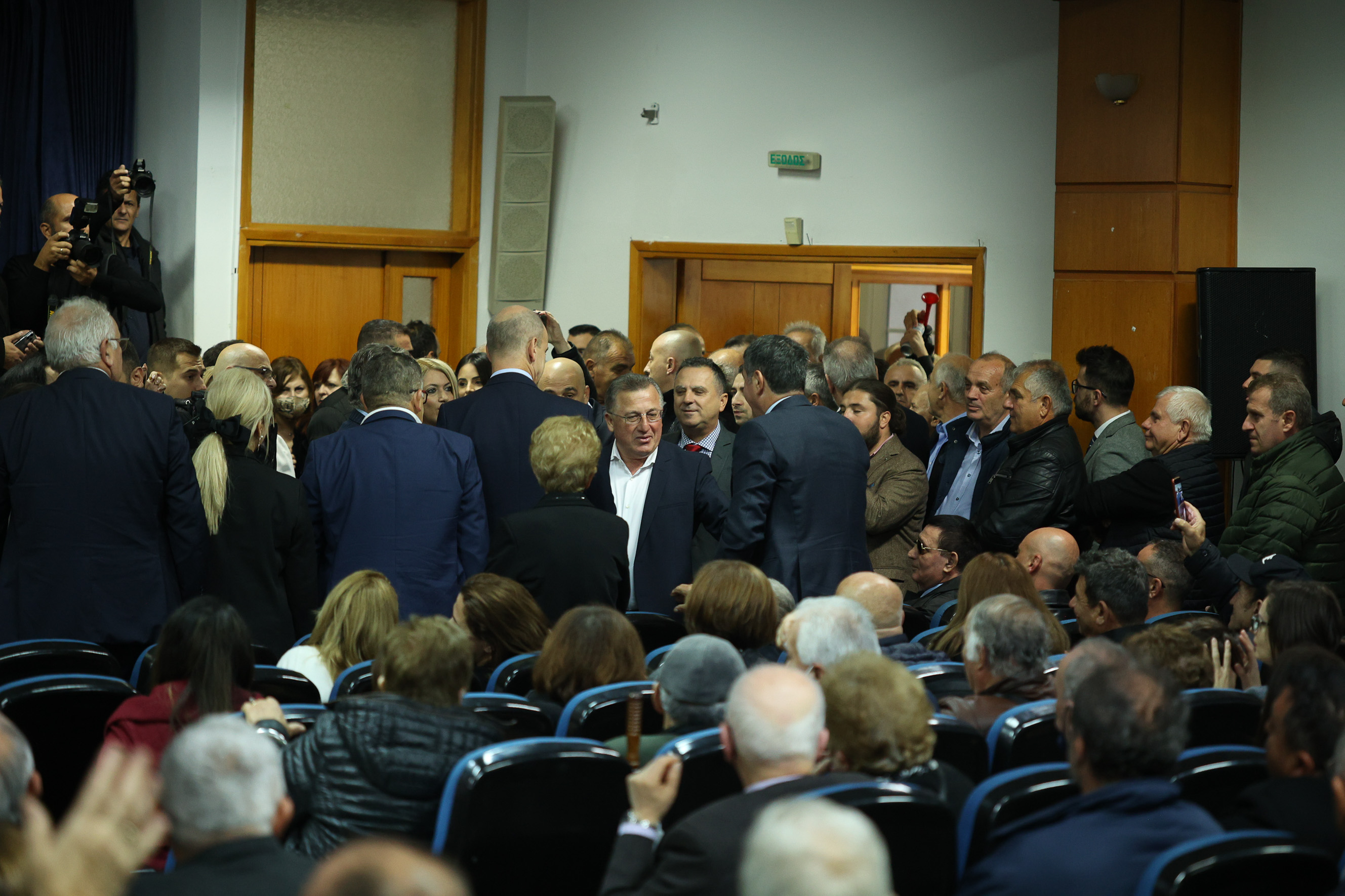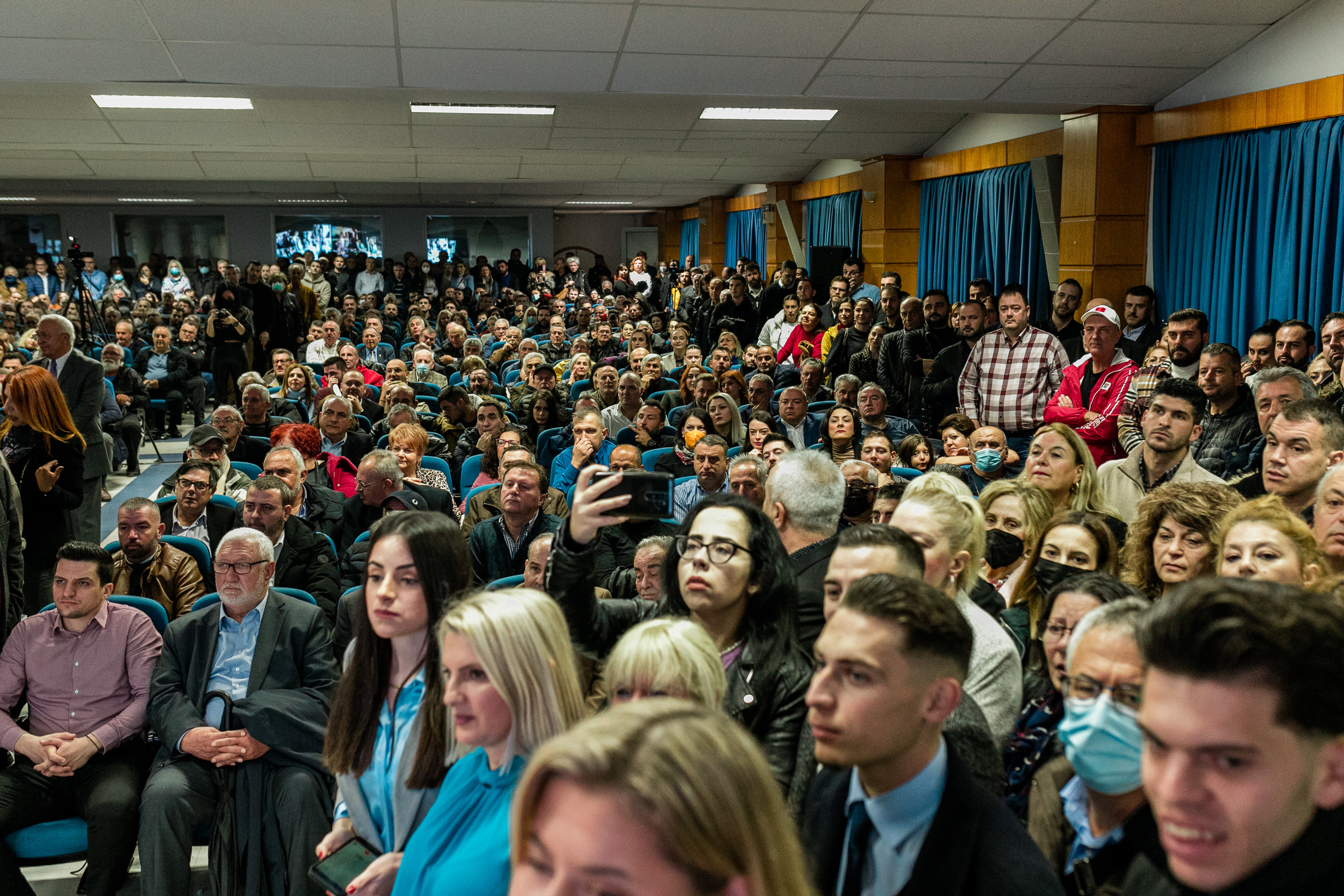 Παρά τη βροχή, επικράτησε το αδιαχώρητο τόσο μέσα στην αίθουσα όσο και έξω από το συνεδριακό κέντρο όπου ο κόσμος παρακολουθούσε την εκδήλωση μέσω γιγαντοοθόνης.