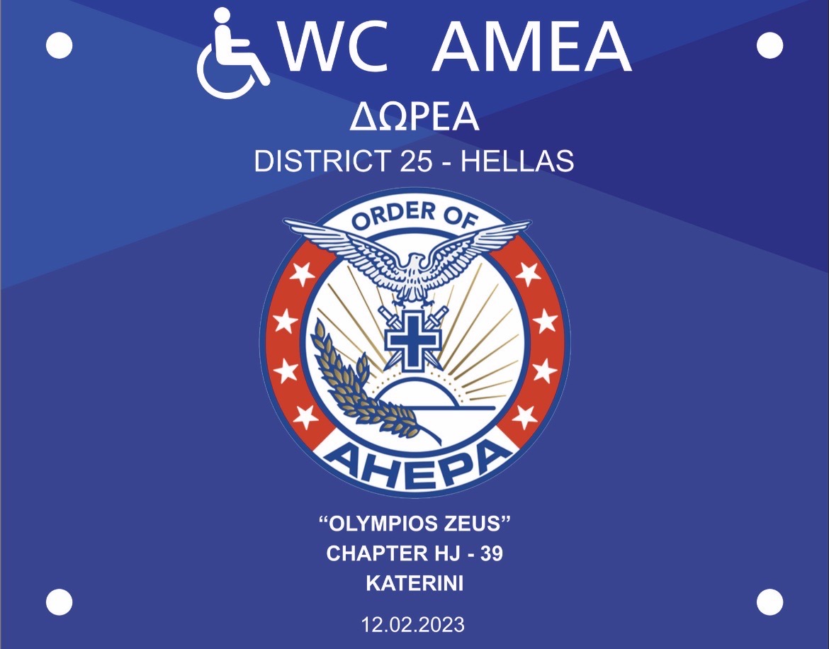 Πιστή στην υπόσχεση που έδωσε η AHEPA HELLAS για ανταπόδοση της φιλοξενίας του Εθνικού συνεδρίου της στην πόλη και στο Δήμο Κατερίνης, προχώρησε σε παράδοση προς χρήση χώρου υγιεινής για τα ΑΜΕΑ στο Συνεδριακό Κέντρο Κατερίνης.