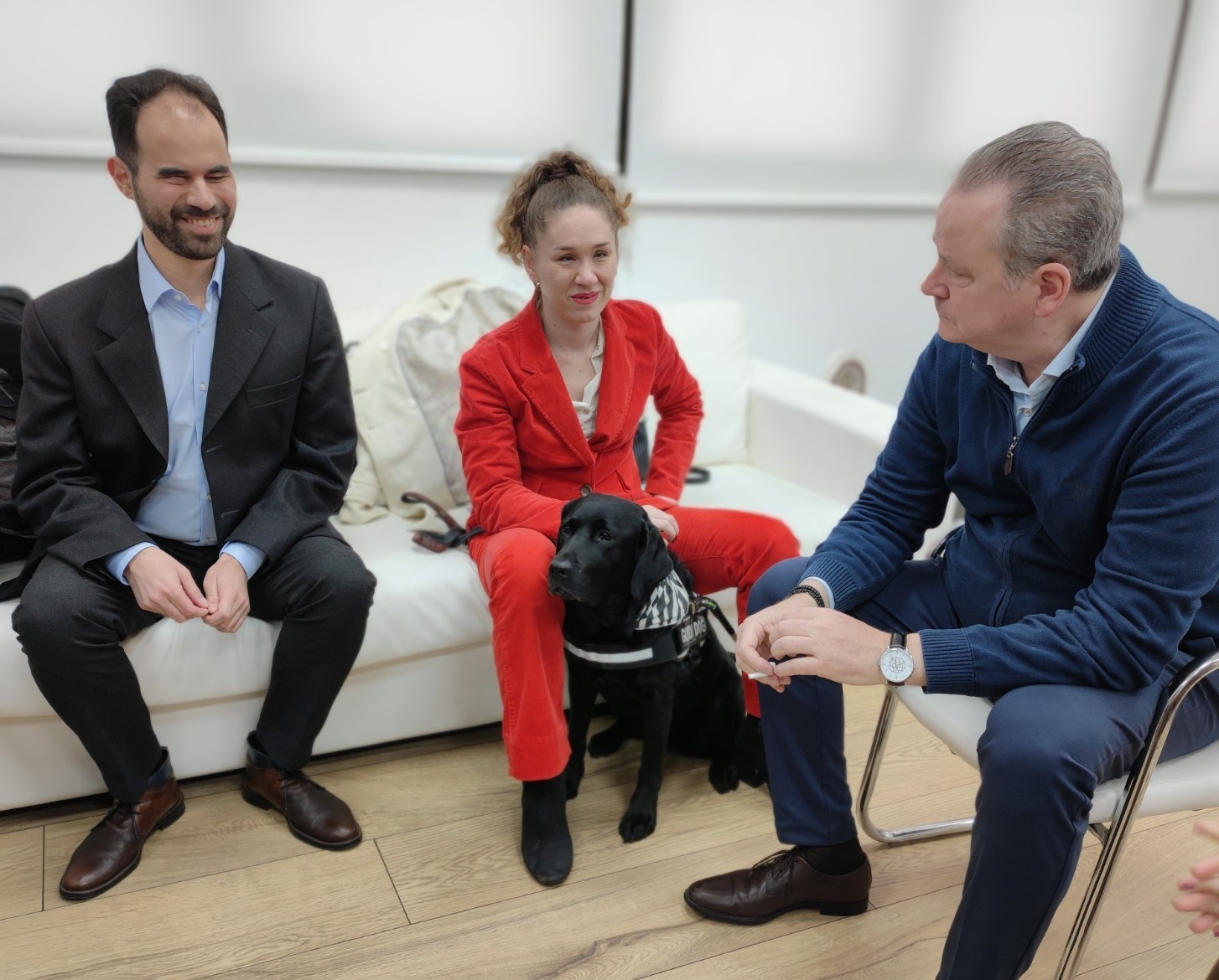 Στο πλαίσιο του διημέρου, ο πρόεδρος της κοινωνικής επιχείρησης, Βαγγέλης Αυγουλάς, ως μέλος της επιτροπής κοινωνικής πολιτικής της ΚΕΔΕ και η Τζουλιάνα Μπούσι, συναντήθηκαν με τον Δήμαρχο Κατερίνης Κώστα Κουκοδήμο. Μαζί τους η Γιούνι, ένας εκπαιδευμένος σκύλος, που έχει συνοδέψει τη Τζουλιάνα σε περισσότερα από 30 ταξίδια στο εξωτερικό. Ο σκύλος οδηγός αποτελεί τα μάτια του χειριστή του και ενδυναμώνει τα άτομα με αναπηρία ώστε να συμμετέχουν στην οικονομική και κοινωνική ζωή.