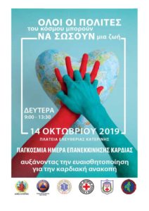 «Παγκόσμια ημέρα επανεκκίνησης της Καρδιάς» – “ΟΛΟΙ ΟΙ ΠΟΛΙΤΕΣ του κόσμου μπορούν να ΣΩΣΟΥΝ μια ζωή”